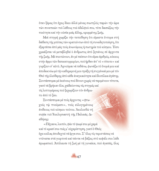 Τό ξέρεις καλά· Σέ μία στιγμή ἔχουν χαθεῖ πολλά καί ἔχουν κερδηθεῖ ἀκόμη περισσότερα. Εἶναι ἐκεῖνες οἱ στιγμές πού διαστέλλονται, ὥσπου νά γίνουν μία αἰωνιότητα. Τέτοιες στιγμές θά βρεῖς κι ἐδῶ. Στιγμές πού θέλησαν νά διασταλοῦν. Μά μή βιαστεῖς πώς δέν σέ ἀφοροῦν νά πεῖς. ῾Η αἰωνιότητα εἶναι μία κι εἶναι κοινή γιά ὅλους. ῞Οσοι κατάφεραν νά βαφτίσουν σ’ αὐτήν τίς στιγμές τους, γίνονται πόρτα καί διέξοδος πού τούς χωράει ὅλους